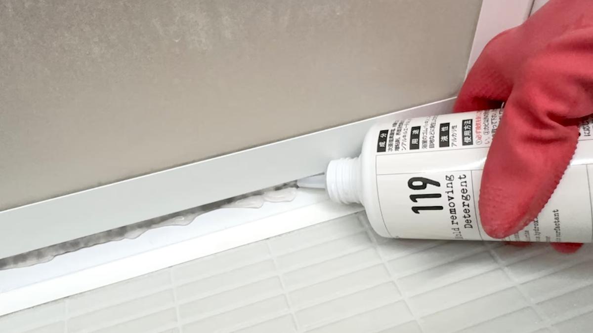 説明書き通り、まずはカビ以外の汚れと水分を取り除いた後、ジェルを塗布していきます。