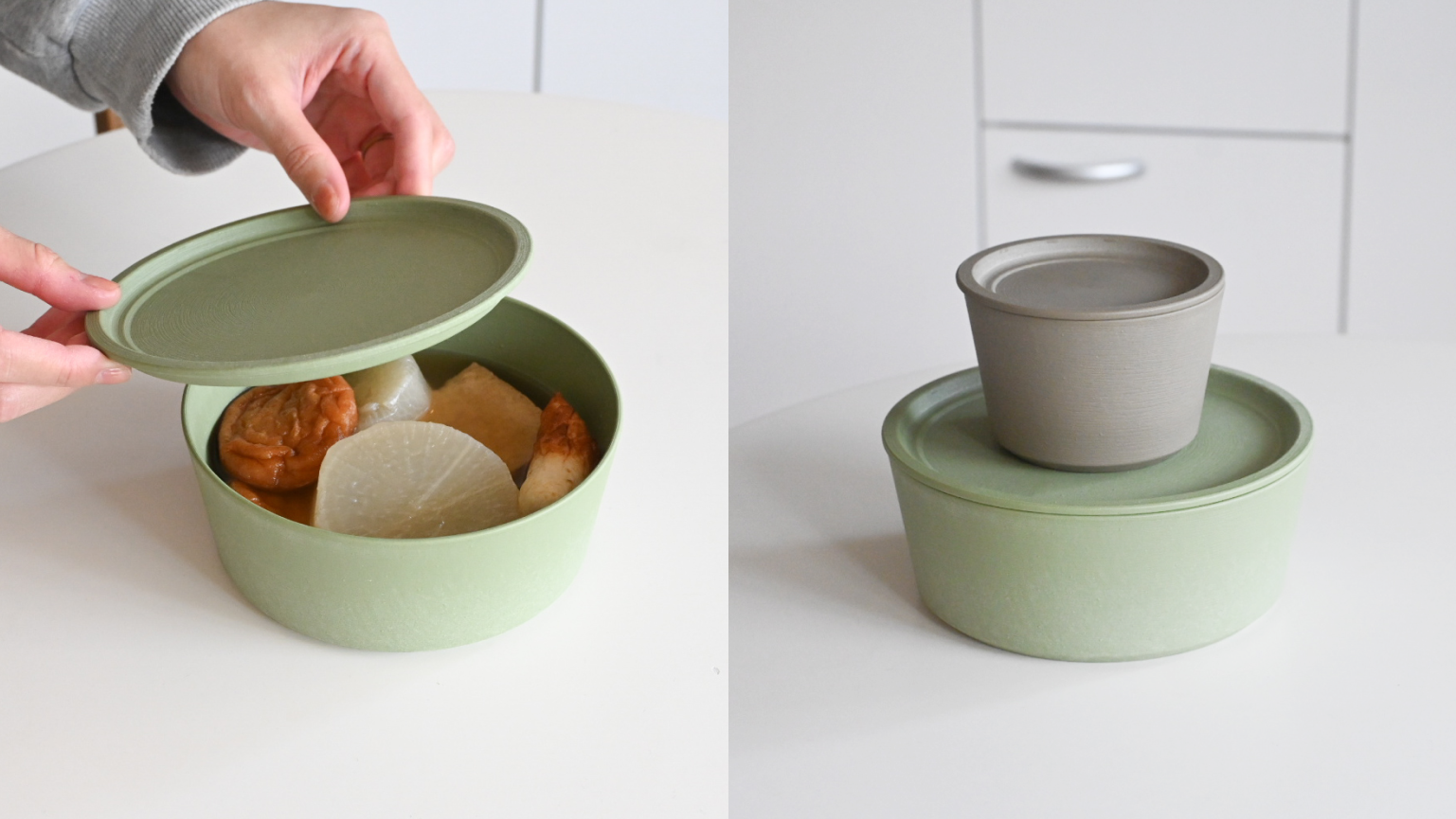 食卓にそのまま出せるだけでなく、フタを小皿として使えたり、冷凍保存や電子レンジの調理にも対応していたりと、想像以上に優秀だったんです。