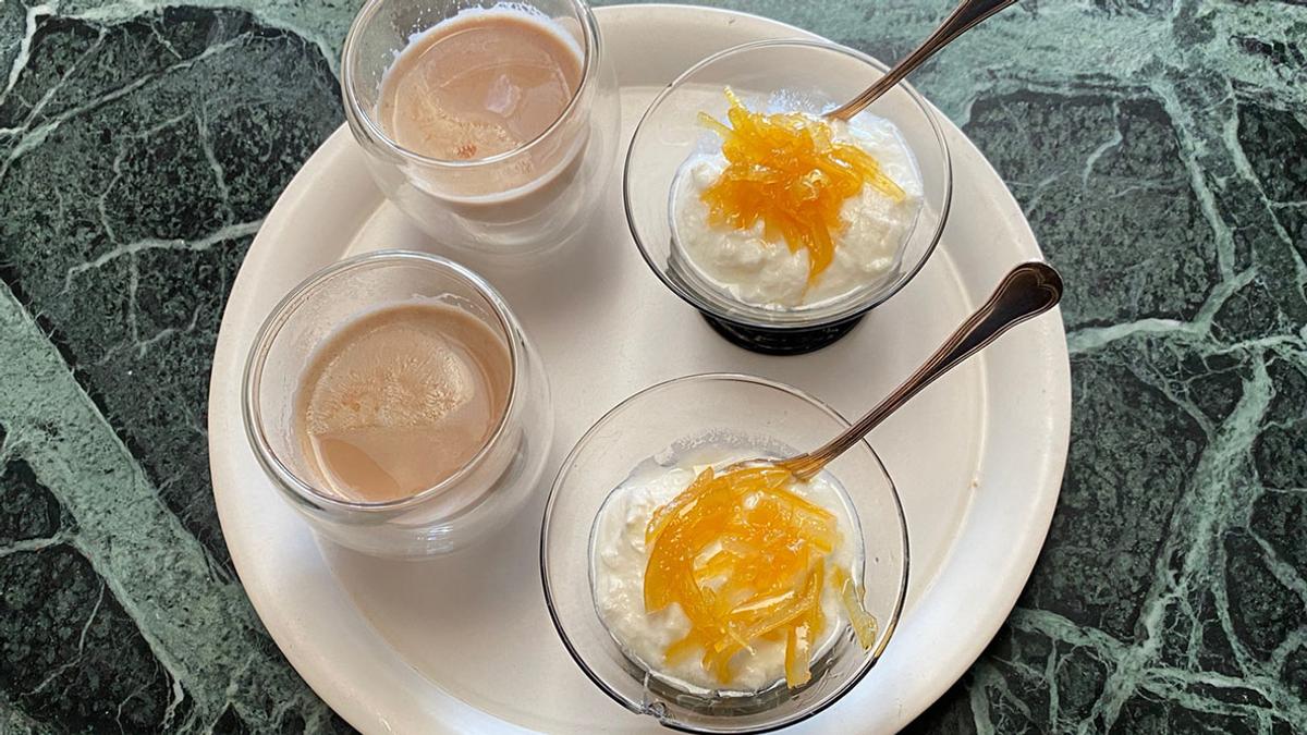 ヨーグルトとcafé au lait。いいお天気が続きます。