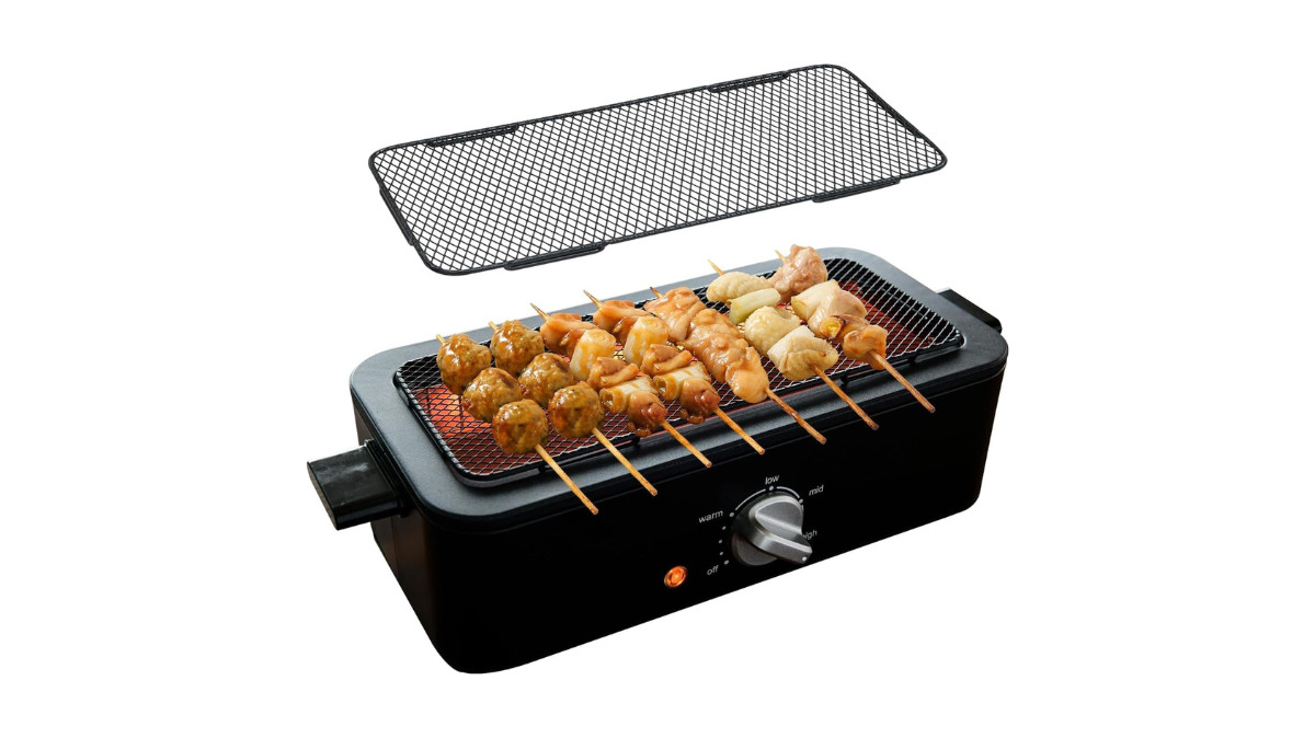 炭を使わない電気式なので、火起こしの手間は不要。スイッチを入れるだけで、居酒屋のような焼き体験が自宅で楽しめます。外食に行かずとも、好きな食材を自分のペースで焼けるのは大きな魅力です。