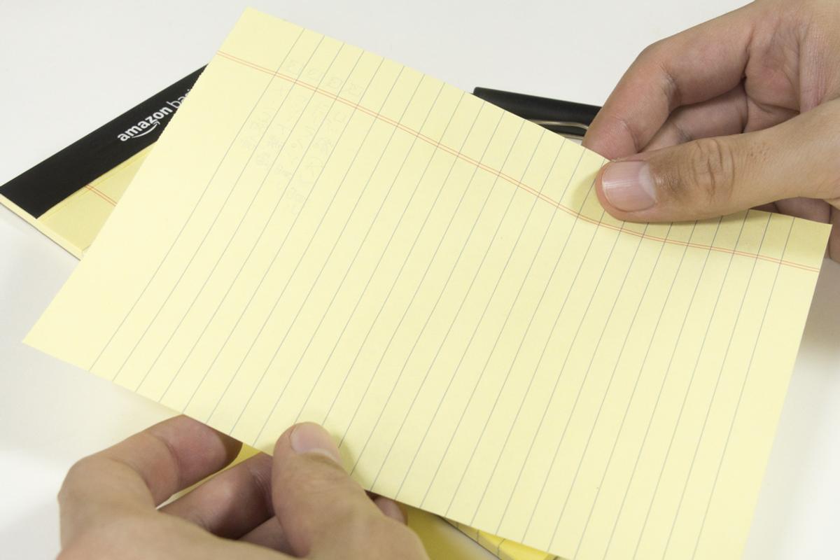 ちなみにこのマージン罫が入った黄色いメモパッドは「リーガルパッド」と呼ばれることが多いタイプのメモ帳で、元々は弁護士などの法律関係者によく使われていたもの。