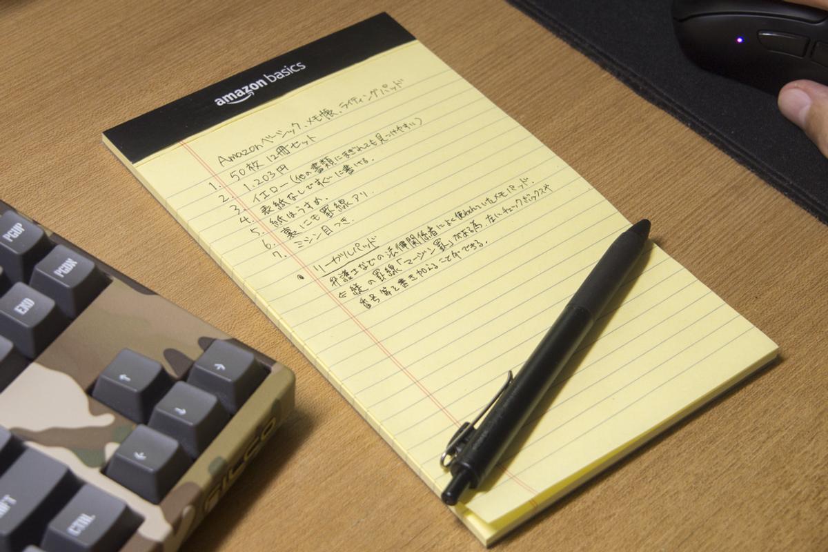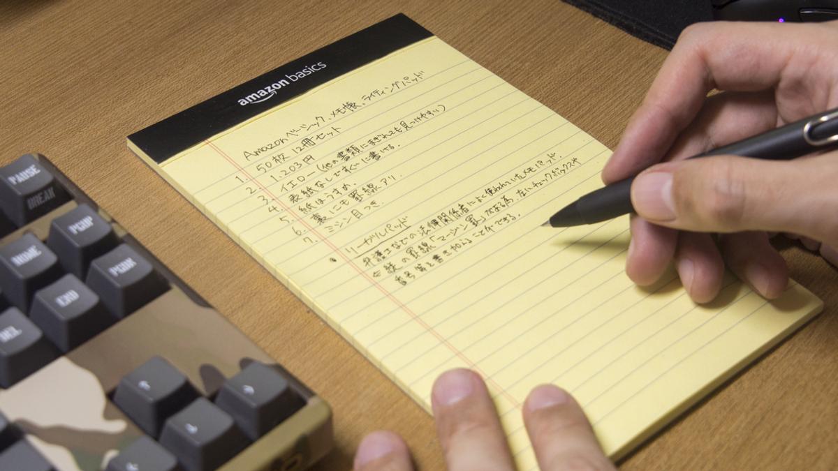 今まさにこの文章を書いているときにも手元に置いてある、Amazonベーシックの「細罫ライティングパッド」。
