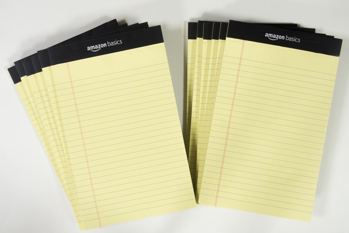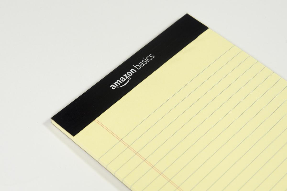 Amazonベーシック「メモ帳 細罫ライティングパッド 13×20cm イエロー 50枚 12冊セット」1,203円(税込)