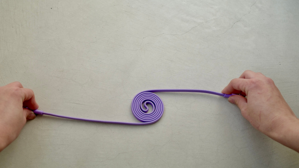 両端を持って軽く引っ張ればケーブルが延び、テンションを緩めると内蔵マグネットが滑らかに吸着を始め、勝手に元のうずまき状に戻ろうとします。
