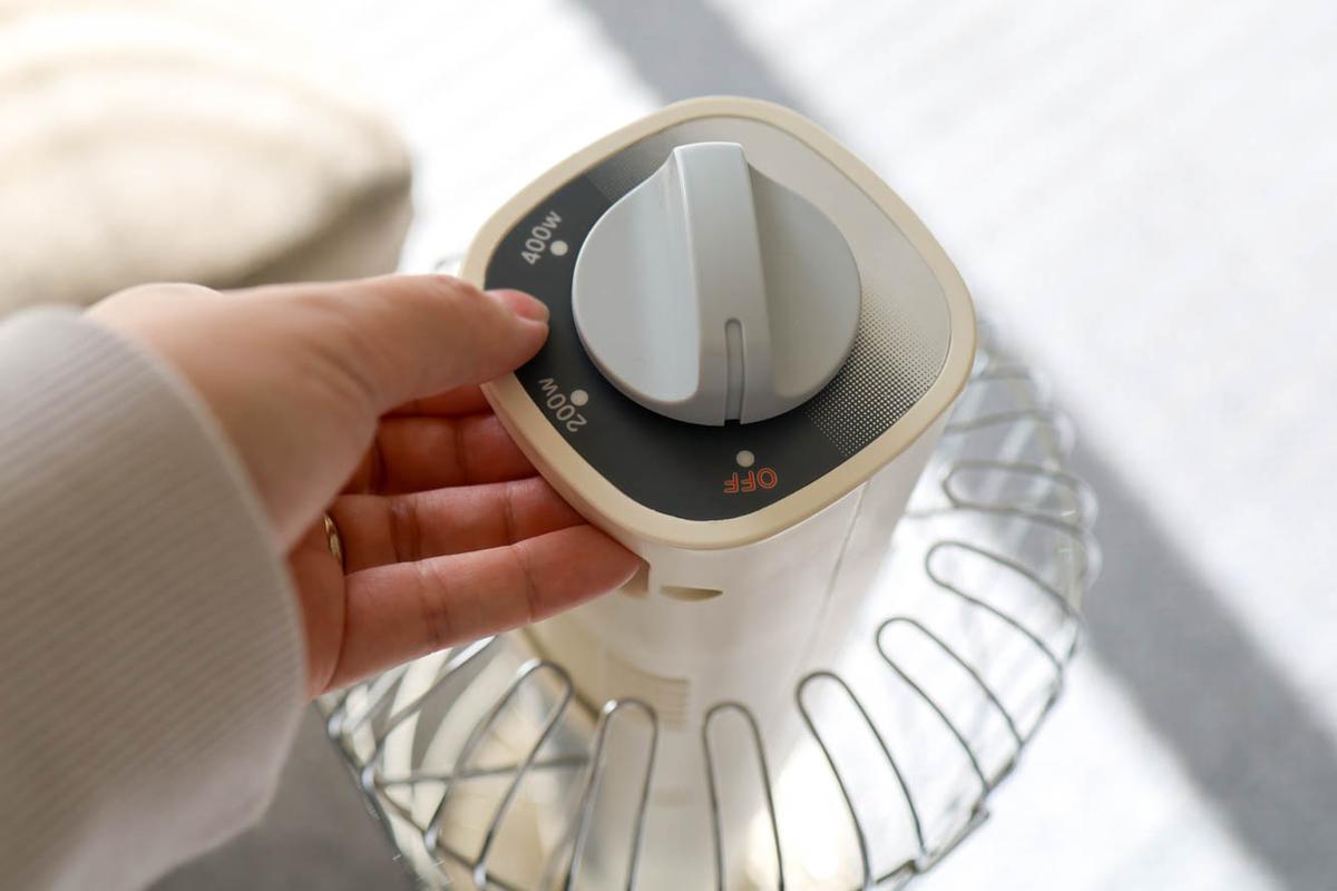 また、200W/400Wの2段階で切り替えが可能。タイマーや自動オフ機能などはついていませんが、このシンプルさもわかりやすくて好きです。