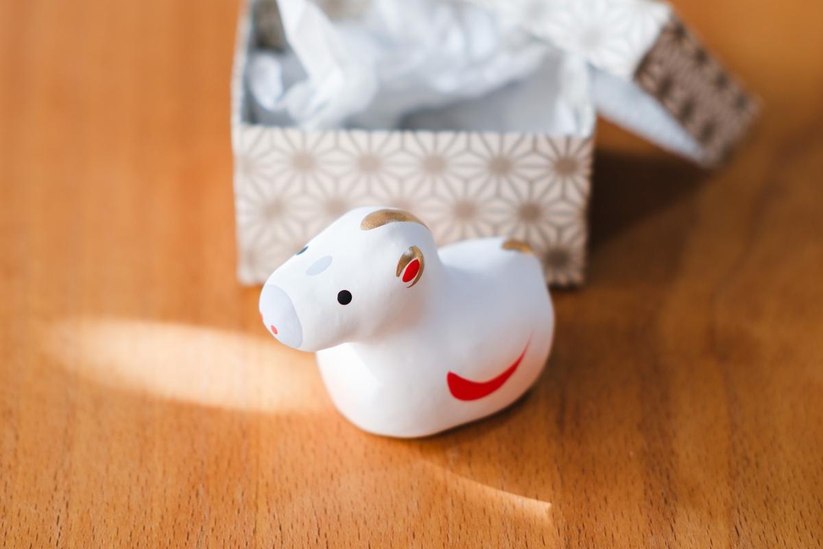例年の縁起物は紙に包まれてそのまま入っていたので、箱入りなだけでなんだかうれしい気持ちになります。