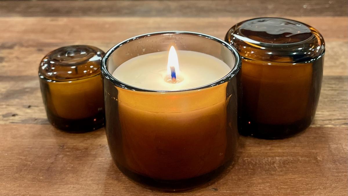 キャンドルは精油をブレンドしてつくられており、ワックスは植物性。蓋をかぶせて消火できるので、消したときの煙の香りが広がりにくい仕様です。