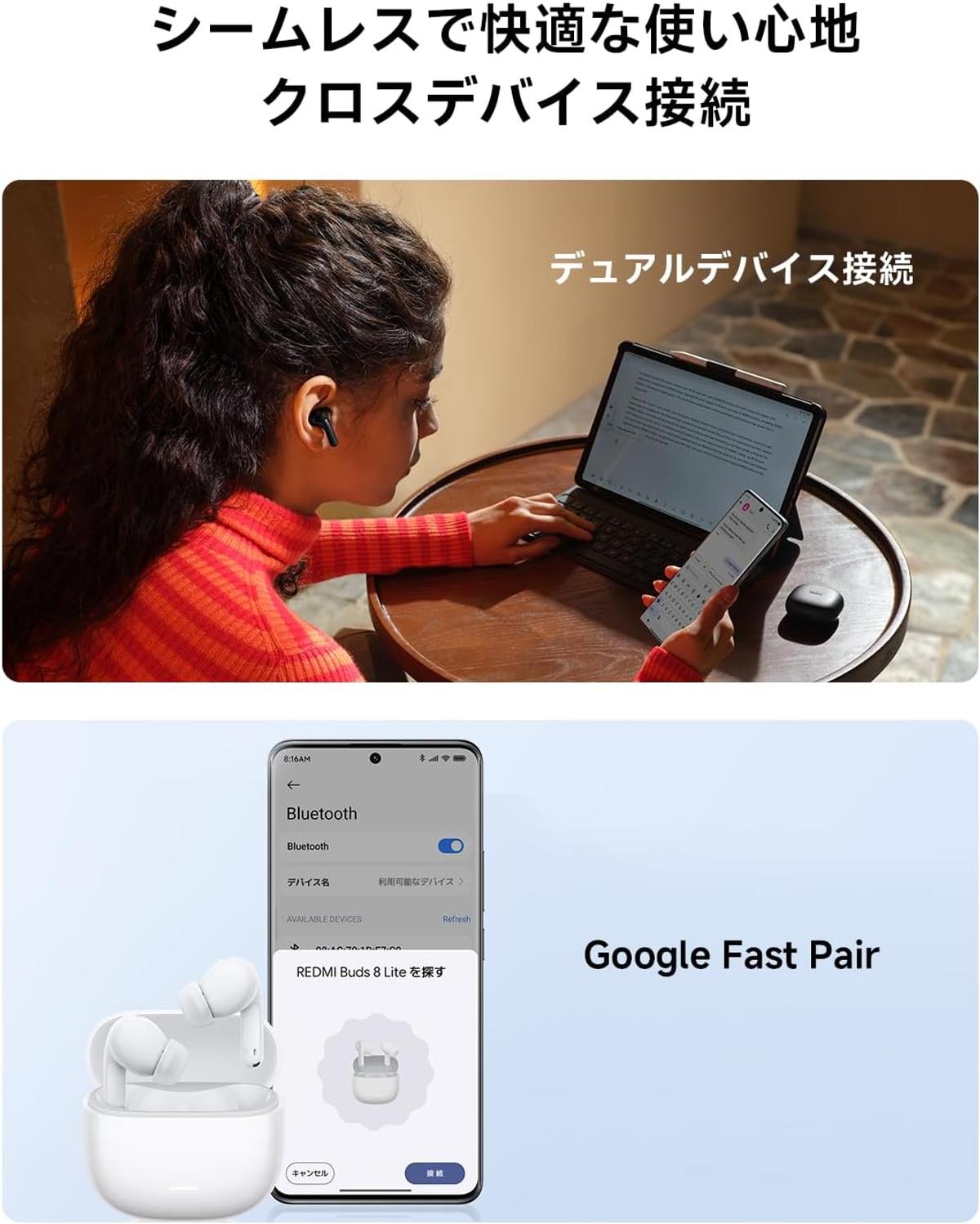 デュアルデバイスペアリングやGoogle Fast Pair対応など、日常使いで威力を発揮する機能も実装、快適さもしっかり押さえています。