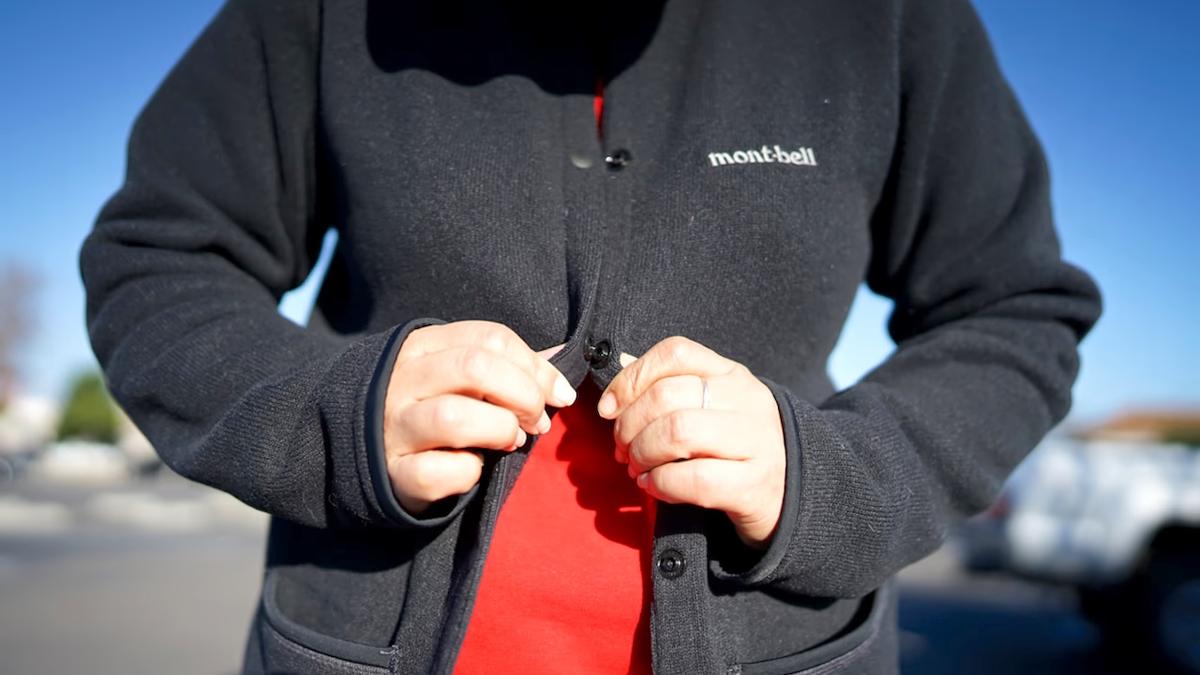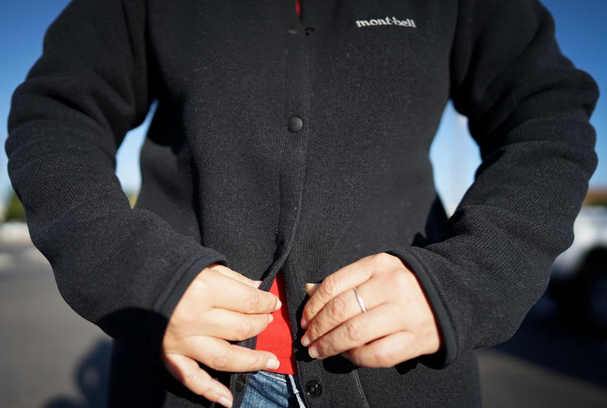 最近買ったモンベルの「クリマプラス ニットカーディガン」は、フリース素材をセーターのように編み上げた生地で、見た目はいい意味でフリースっぽくない1着。