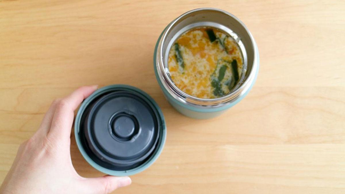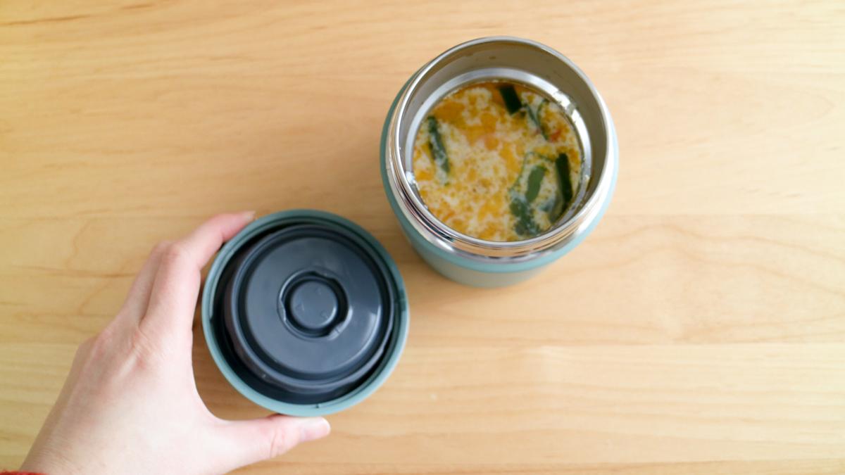 これまでのスープジャーはフタのパーツが4個もあったので、洗うのも組み立てるのも少し面倒だったのですが、これならお手入れも組み立てもかんたんです。