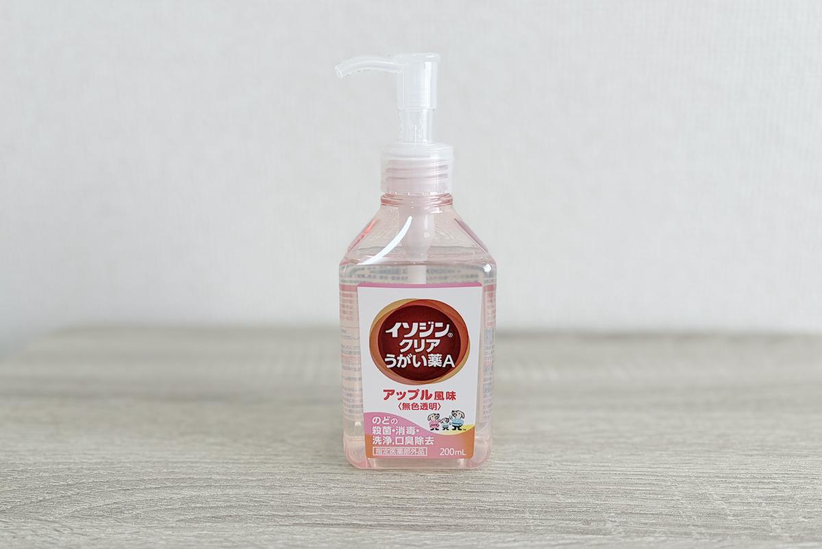 わが家は喉が弱い人が多いので、洗面所にはいつもイソジンうがい薬を常備しています。