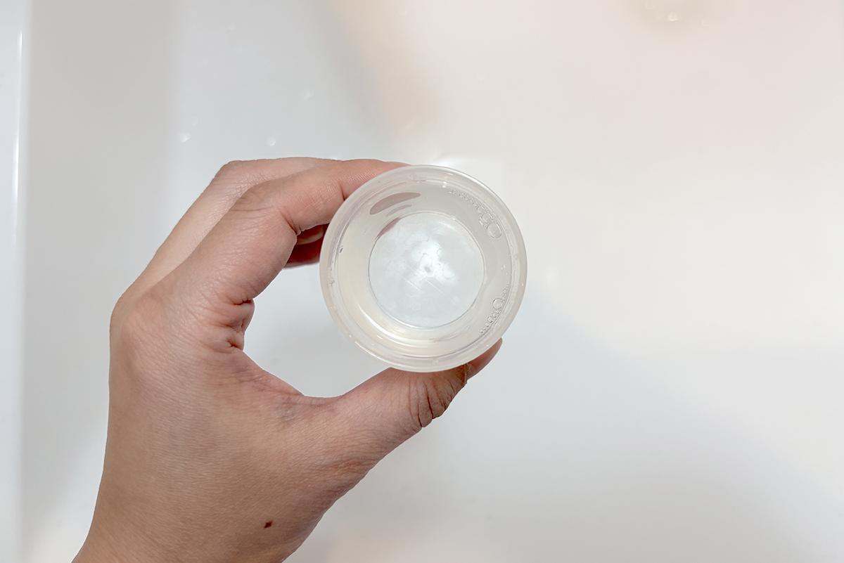 コップに水を入れてワンプッシュ、それだけでうがいの準備完了です。これならお子さんも使いやすそう。