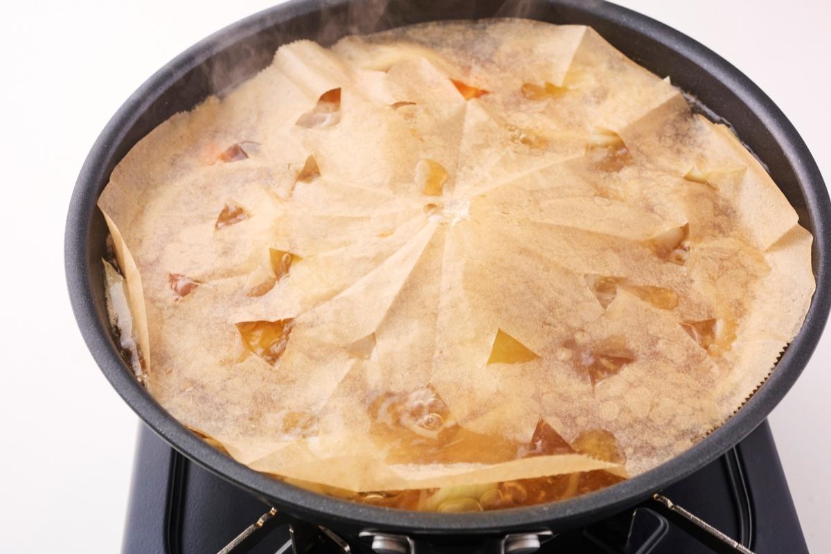 POINT:具材に均一に火を通すために落とし蓋をします。