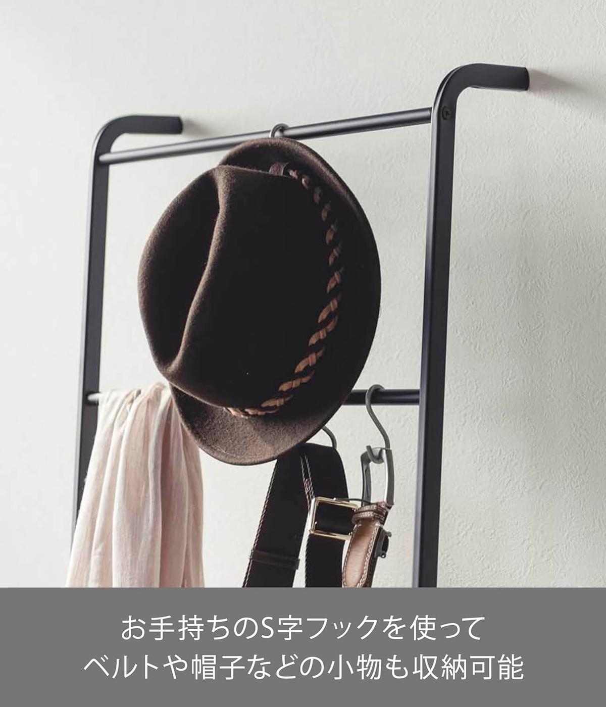 耐荷重はバー1本あたり1kg。S字フックを使えばベルトや帽子といった小物の収納にも使えます。