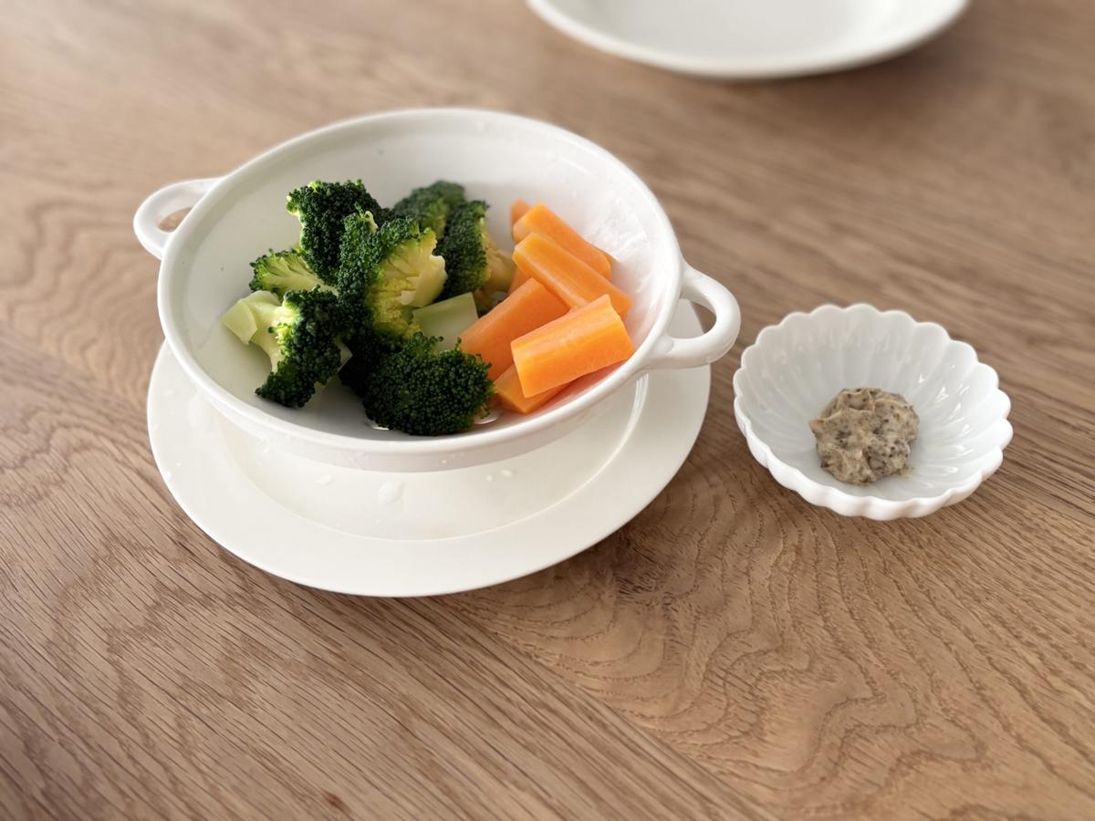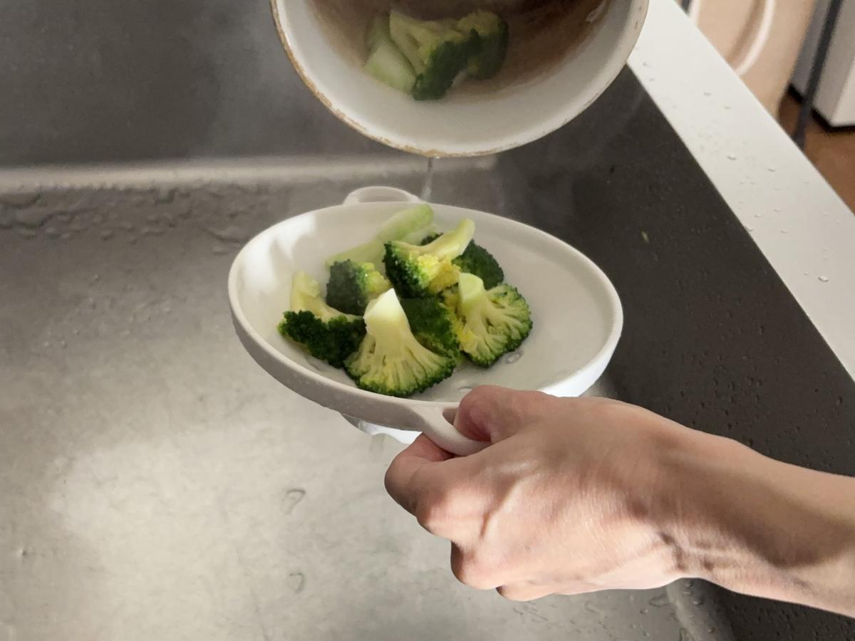 茹で上がったらベリーボウルでお湯を切って、こちらもそのまま食卓へ。