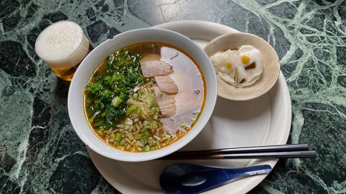 粉雪は静かに静かに降っている。積もる気配はない。昨夜の「火鍋」のスープだけ使用して、喜多方ラーメン(2人分で120円)を作る。春菊、菜の花、茹で豚、ネギ入り。おお、我が家では珍しい、結構辛くてこっくりしたスープ。ああ、こんなスープも美味しいね。