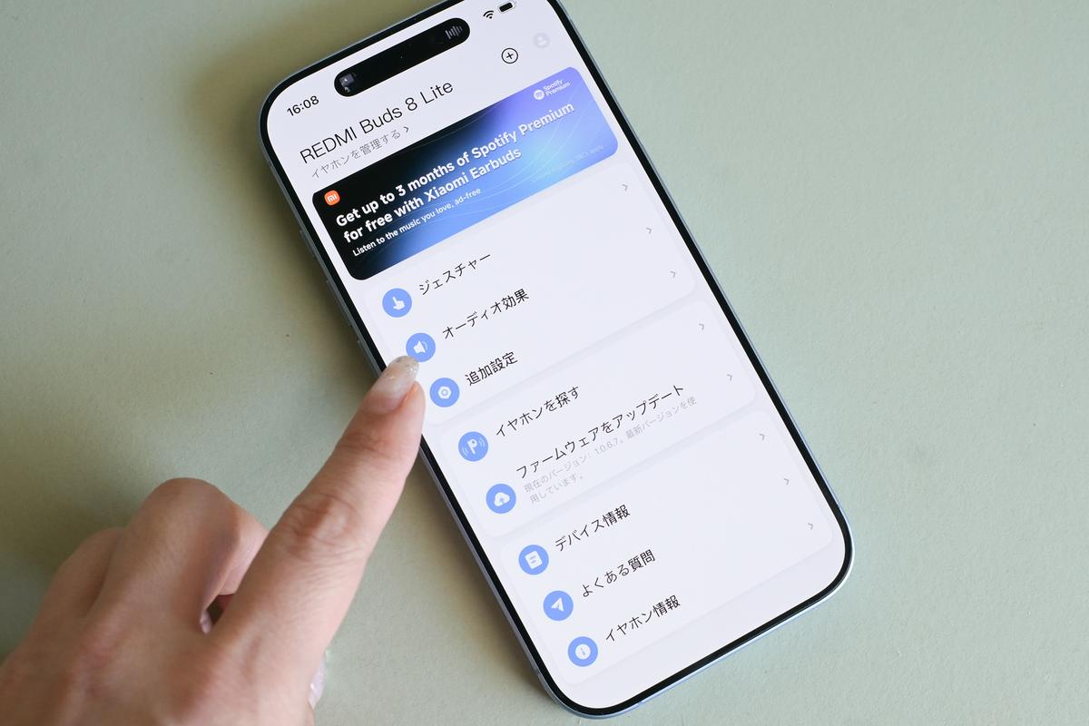操作はタッチセンサー式。アプリ「Xiaomi Earbuds」を使えば、より細かな設定も可能。オーディオ効果(いわゆるイコライザー機能)もあって、3,000円台とは思えない充実っぷりです。