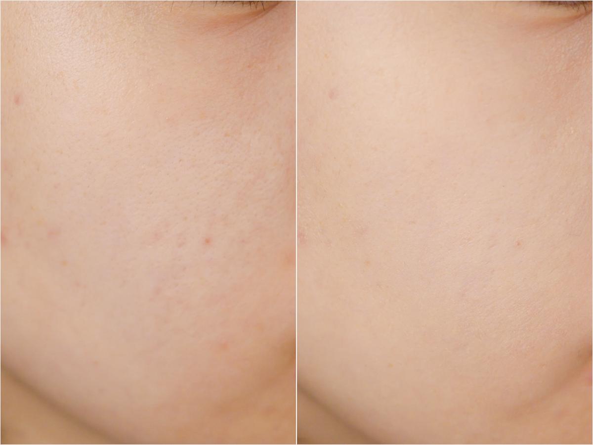 使う時はスキンケア直後の肌に塗るのですが、スキンケア後のテカテカの肌だと毛穴の凹凸が反射して目立っていたのが、これを塗ると毛穴や肌の凹凸がぼかされるような感覚。