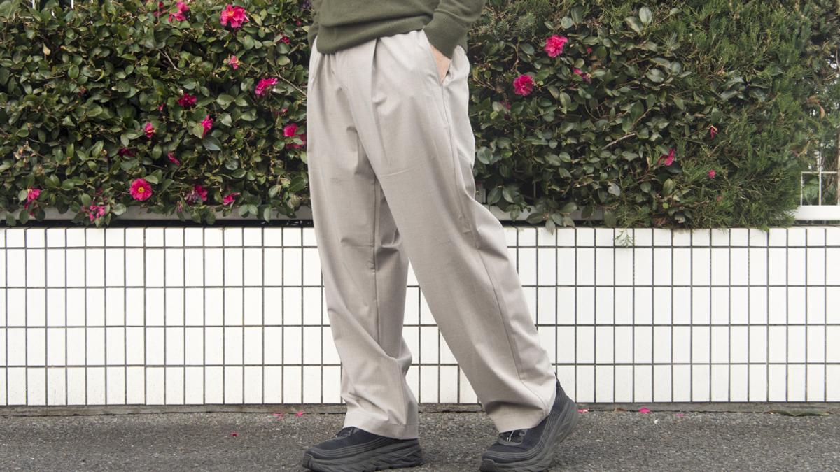 裾に生地がたまったときのシワの入り方が綺麗で、個人的には裾上げせずユルっと穿くのがいいなと思いました。
