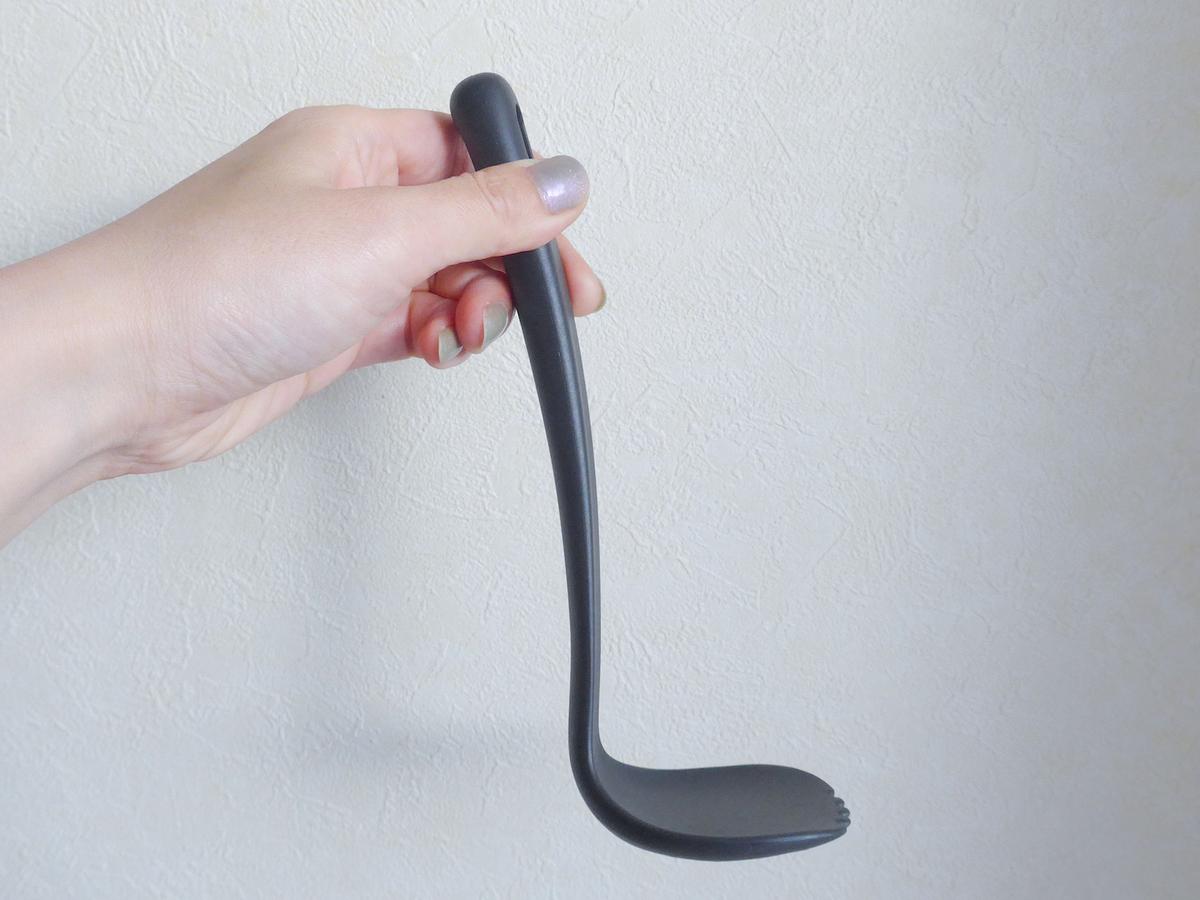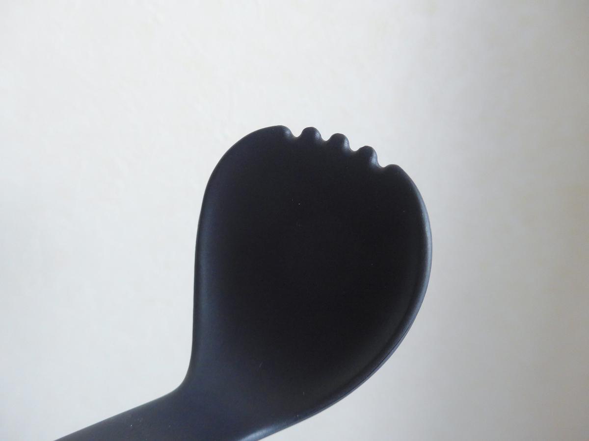 軽いのにしっかりとしているナイロン製で、よくある柔らかいシリコンスプーンとは違って頼もしさがあります。