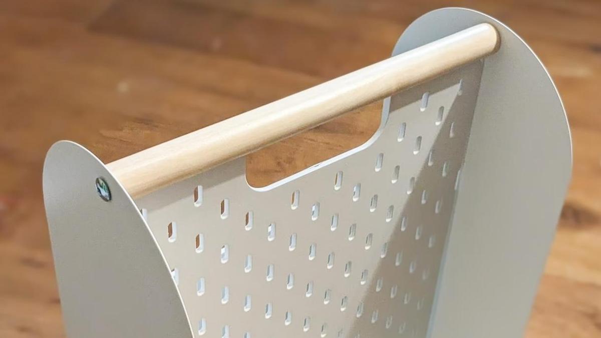 最大の特徴は、「有孔ボード」に取っ手がついたユニークなフォルム。イケアの有孔ボード用パーツを組み合わせて、自分専用の収納スタンドがつくれます。