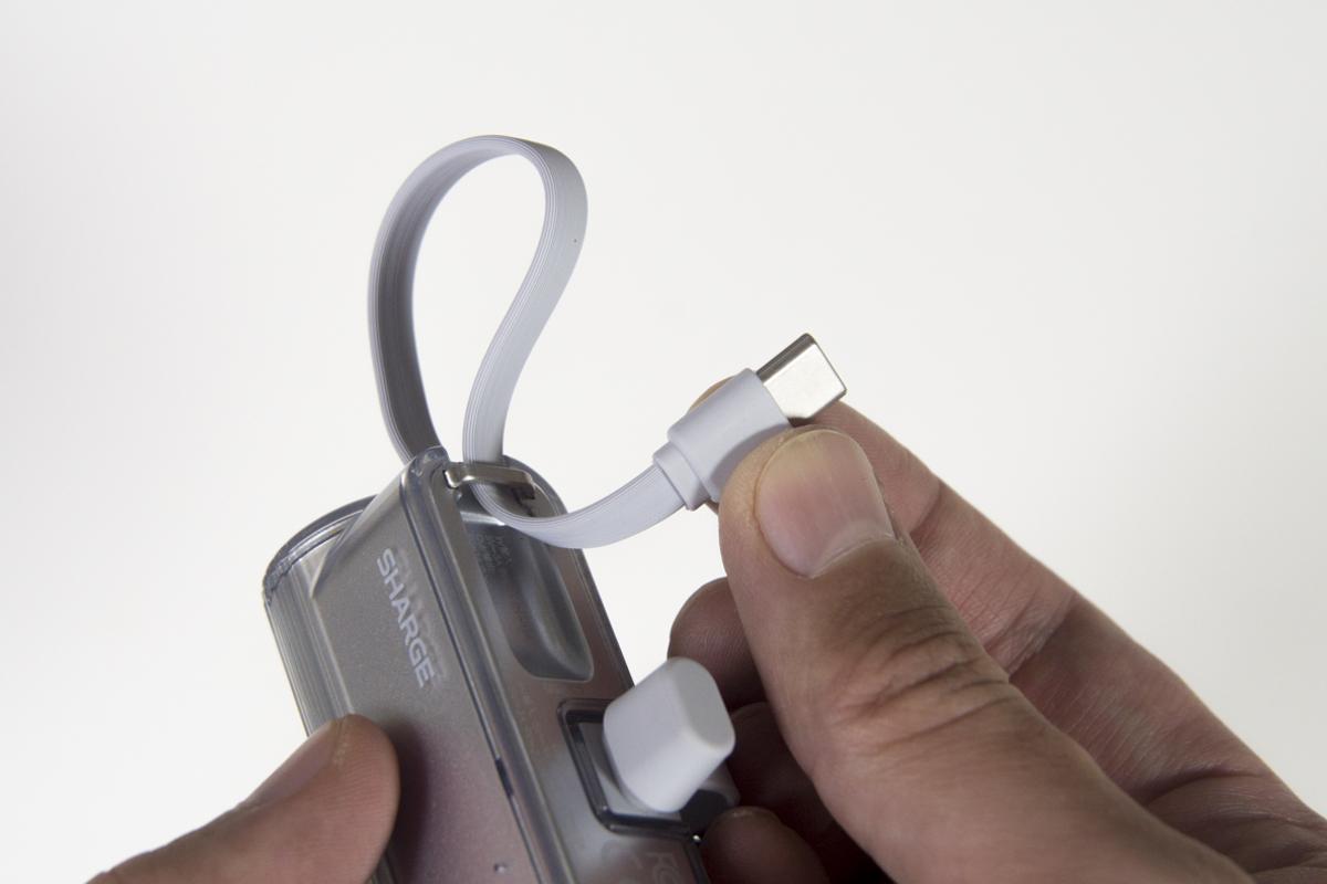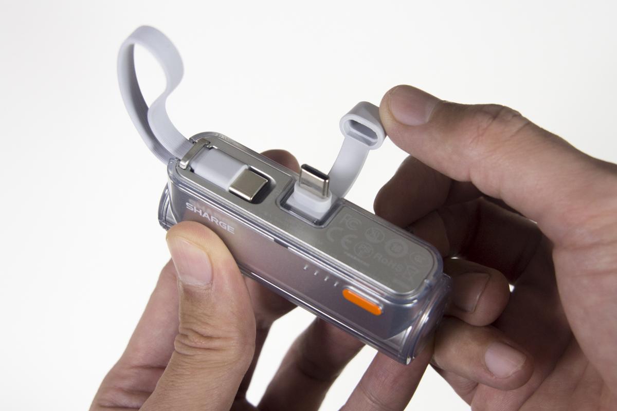 ストラップのように飛び出しているこの部分は、ケーブルがついたUSB Type-C。
