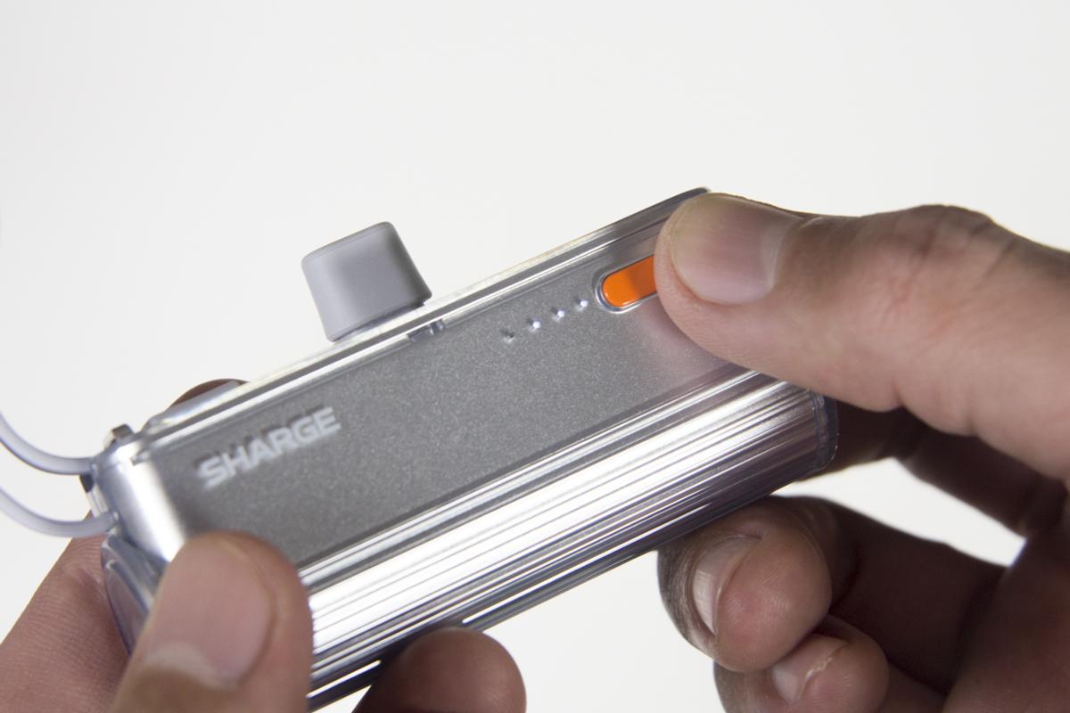 オレンジ色のボタンを押せば、LEDインジケーターでバッテリー残量の確認ができます。