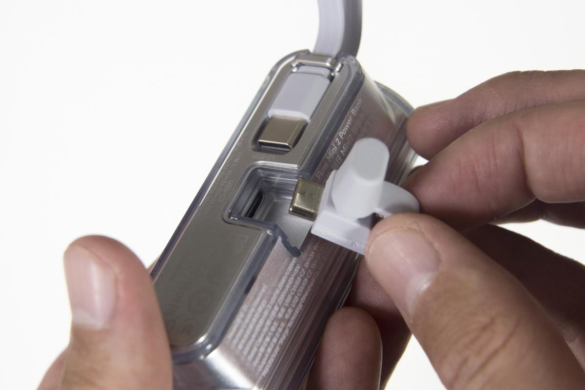 こちらのType-C端子は、モバイルバッテリー本体とType-Cで接続されているので取り外して……、