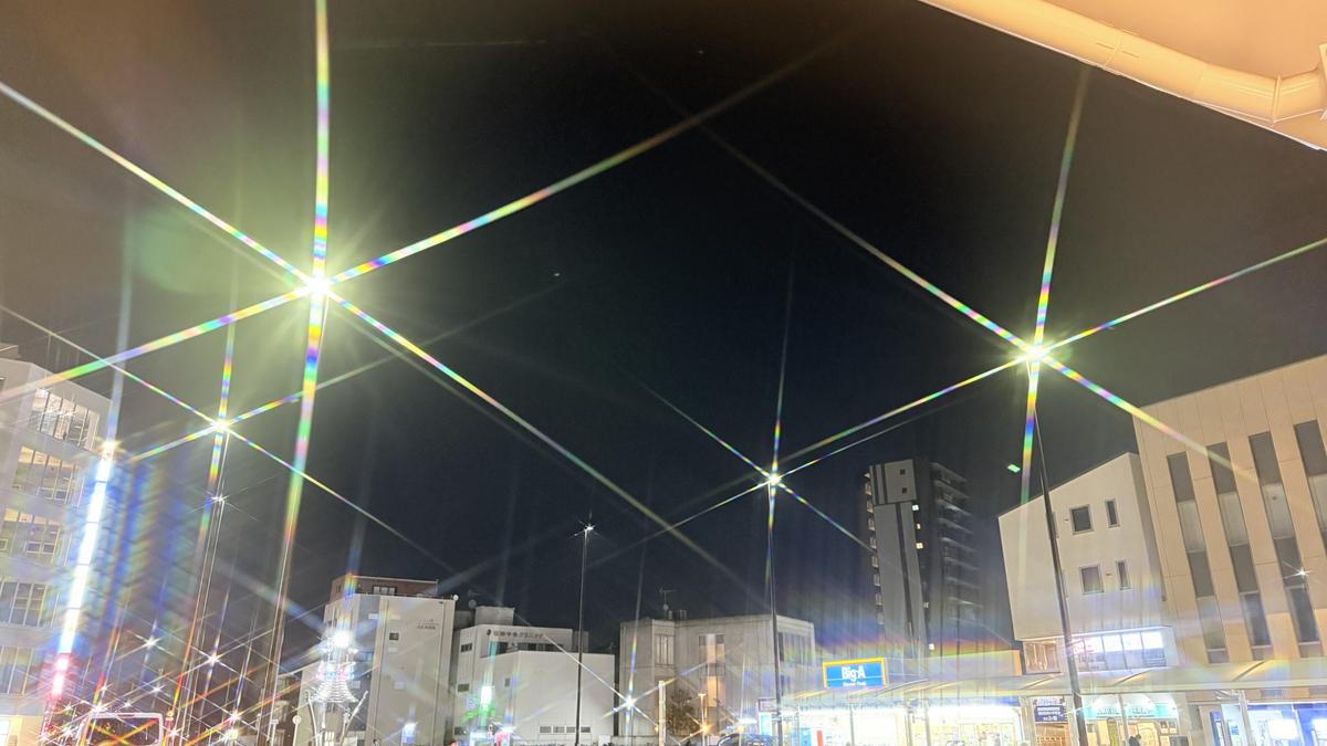 4枚セットの中で筆者が最初に試したのは、光をキラキラとクロス状に広げて写す「クロスフィルター」。夜景との相性が抜群です。