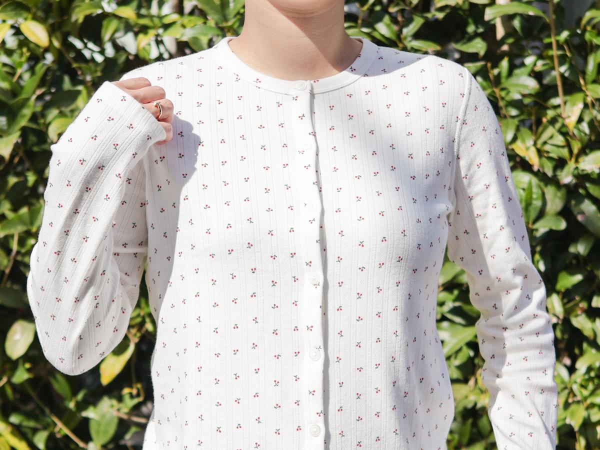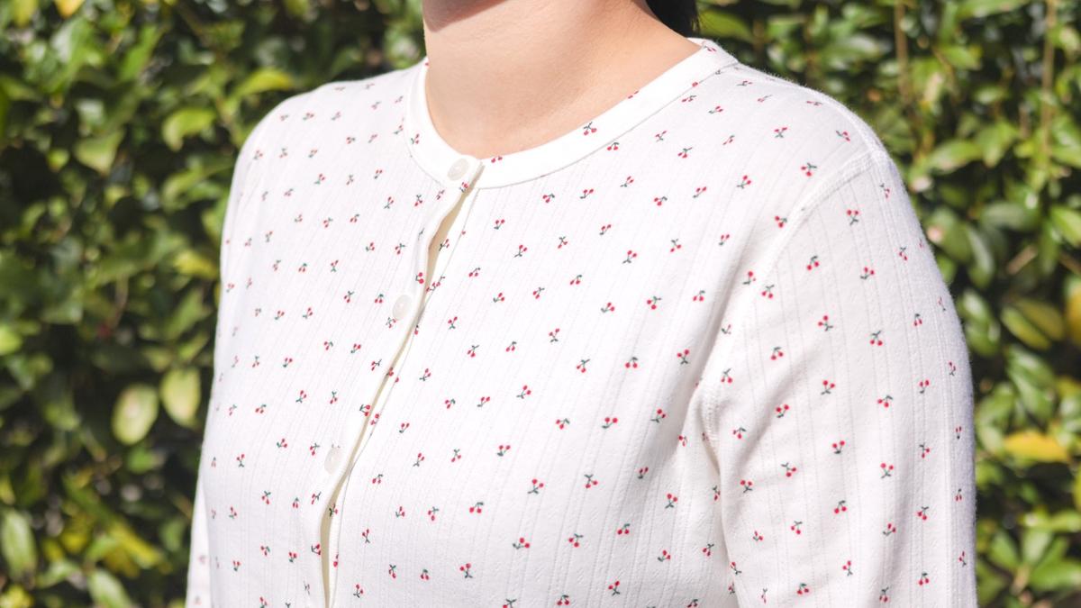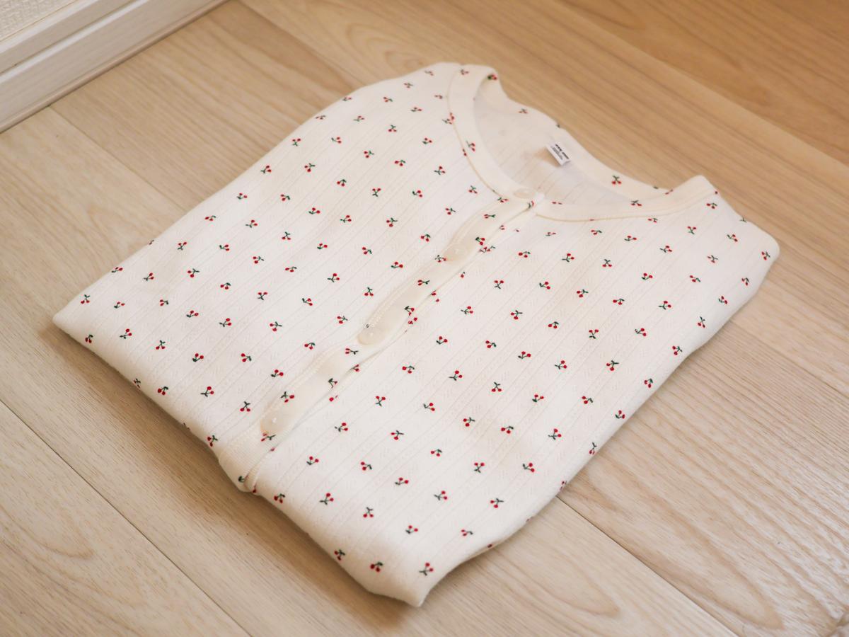 ユニクロの新作をなんとなく見ていたら「これは!」と惹かれたのが、小さなさくらんぼの柄のカーディガン。