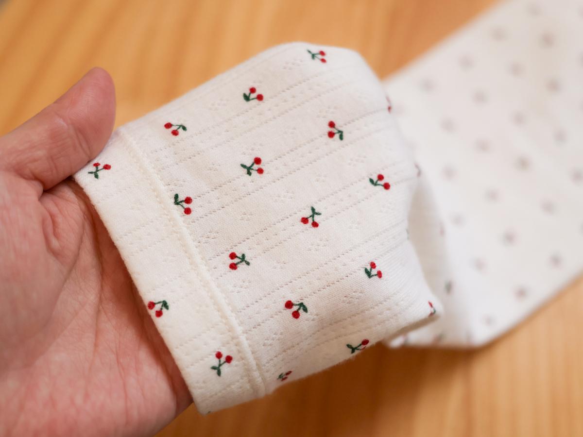 実際に着てみると、さくらんぼ柄が主張しすぎずほどよいアクセントに。