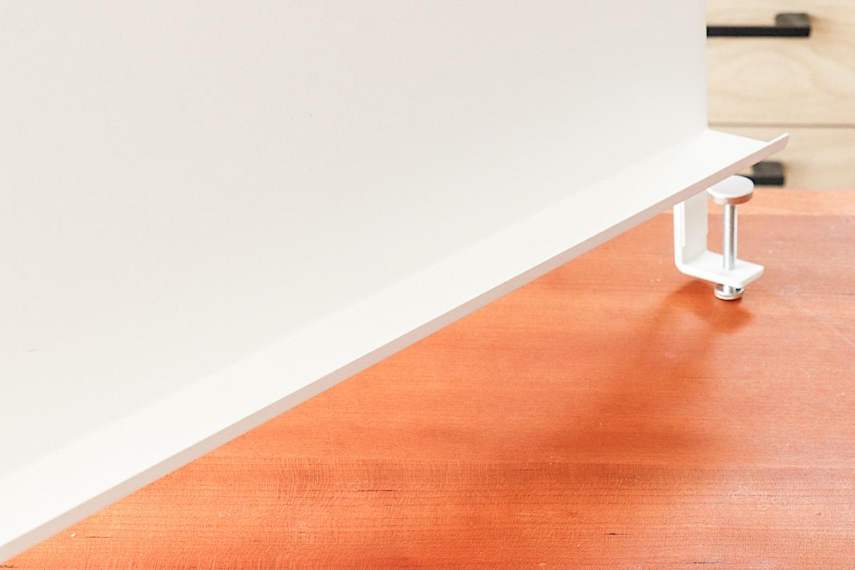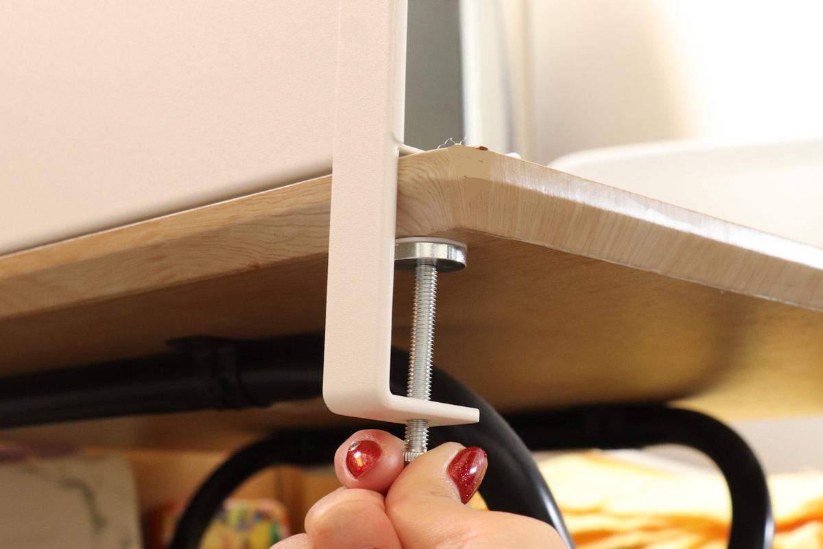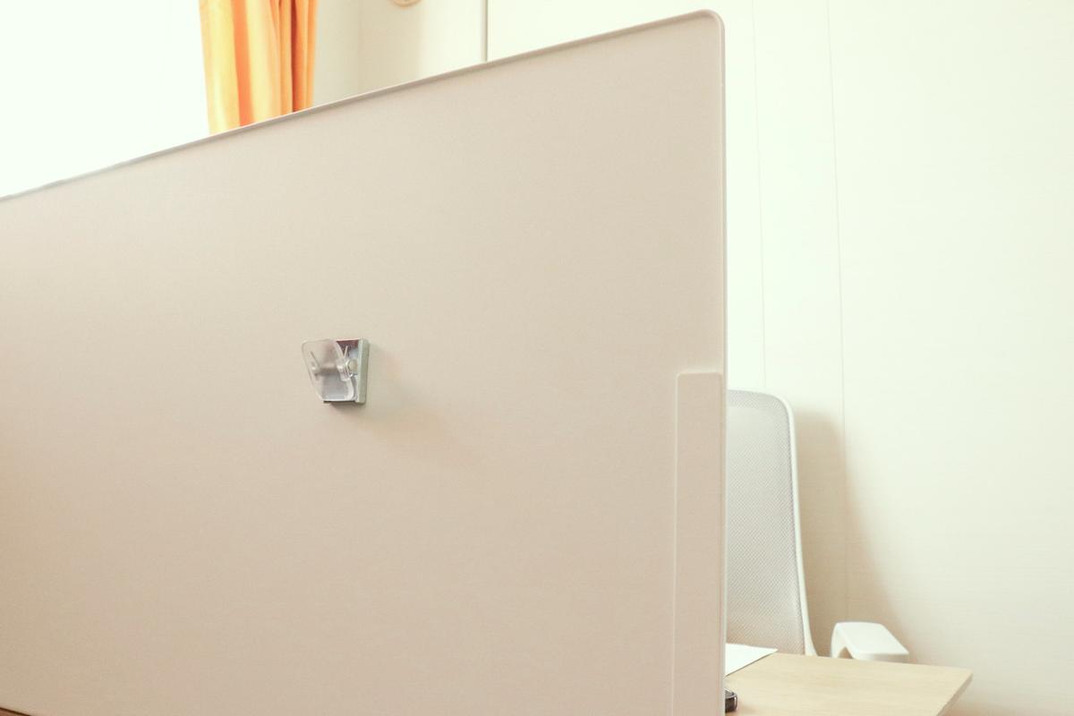 これのおかげで、デスクに穴を開けることなく設置できるのが魅力です。