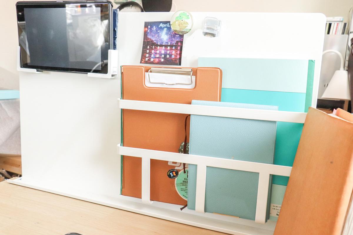 また、下部にはトレーも付いているので、ペンや小物であればこの部分に置いておけます。