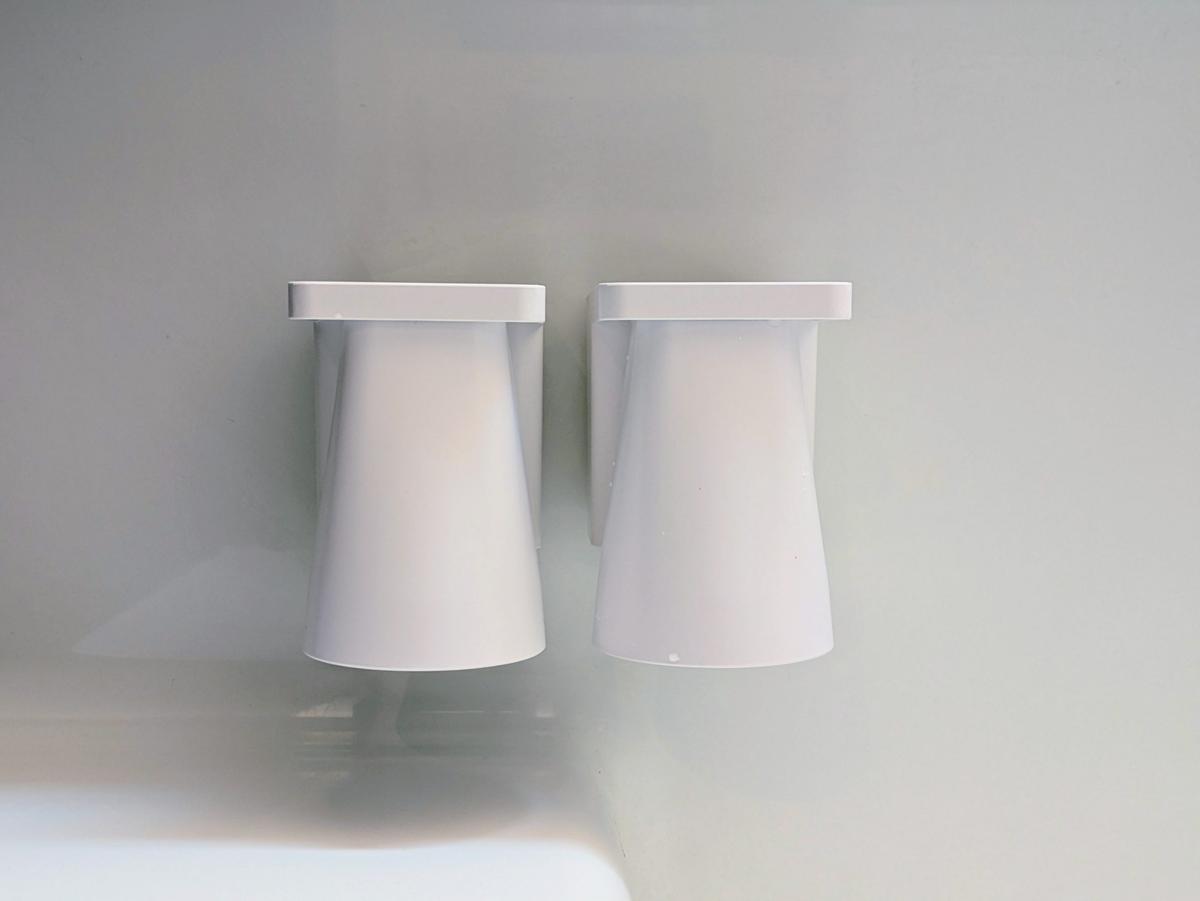 でも2つ並べてみたら、このバランスが想像以上にしっくり。マットな質感と直線的なフォルムが、洗面所にすっとなじみます。