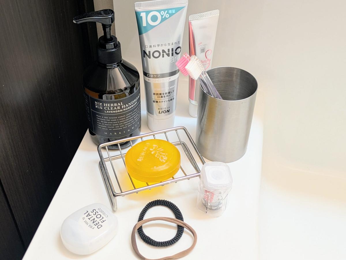 コンタクトやフロス、細かいケアアイテムをさっと置いておけるのが便利。