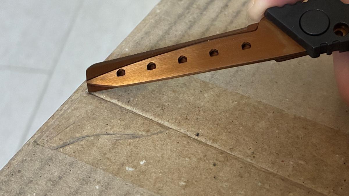 チタンコートの刃は段ボールもサクッと切れるほど切れ味抜群。