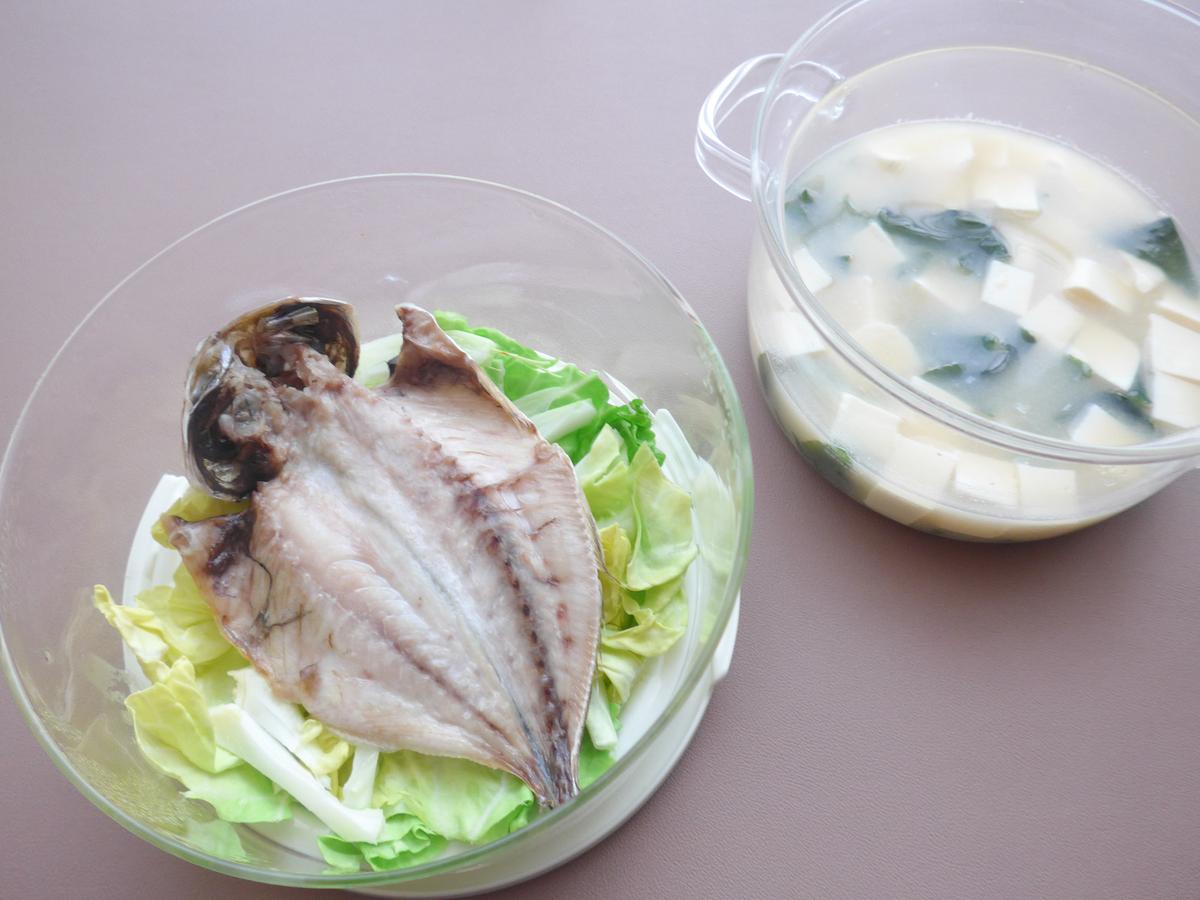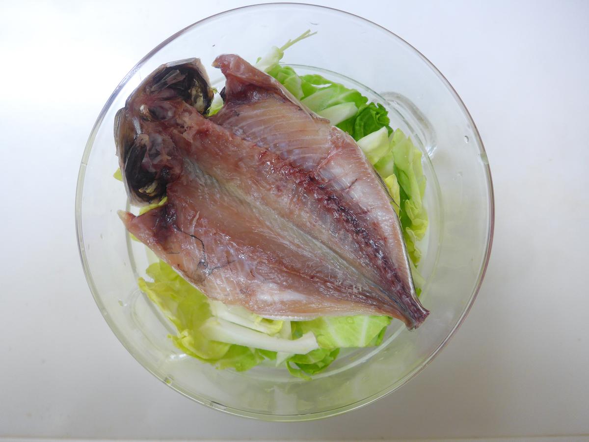 「蒸してみたらどうだろう?」と思い、あじの干物を蒸してみることにしました。