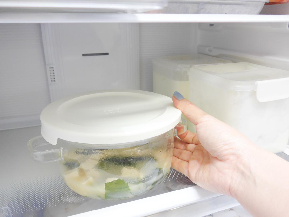 飲み切れなかったみそ汁は、付属のフタをして冷蔵庫へ。