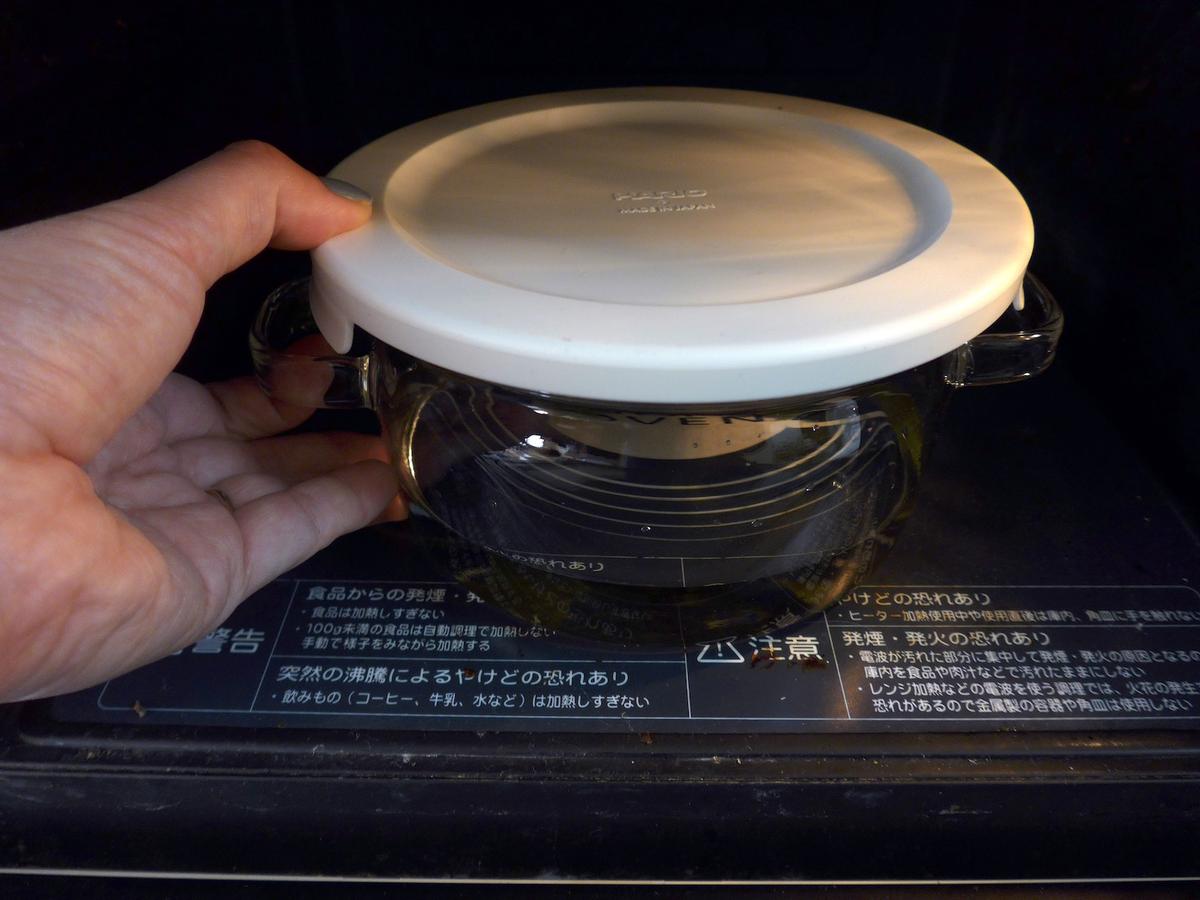 一度取り出して様子を見ると、まだ固そうだったので1分30秒ほど追加の加熱。