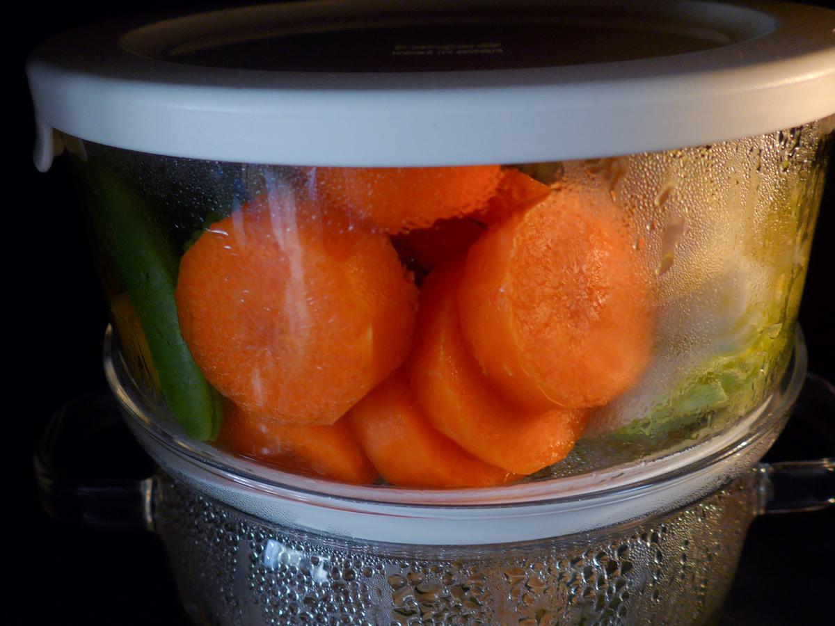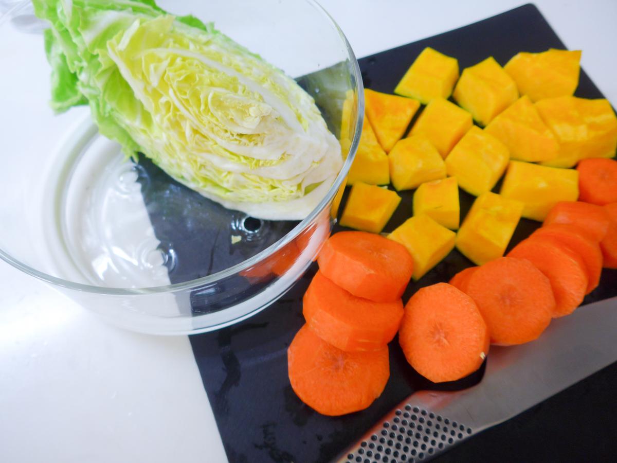 まずは、蒸し野菜とスープを同時に作ってみました。