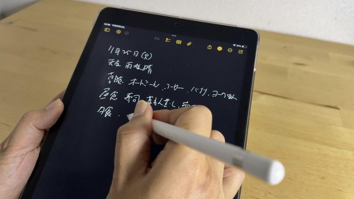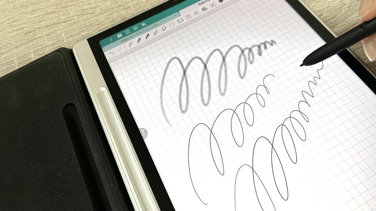 手書きメモについては、前述のアンチグレア加工された画面がペンの滑りすぎも防いでくれるので、本当に紙に書いているような書き心地。