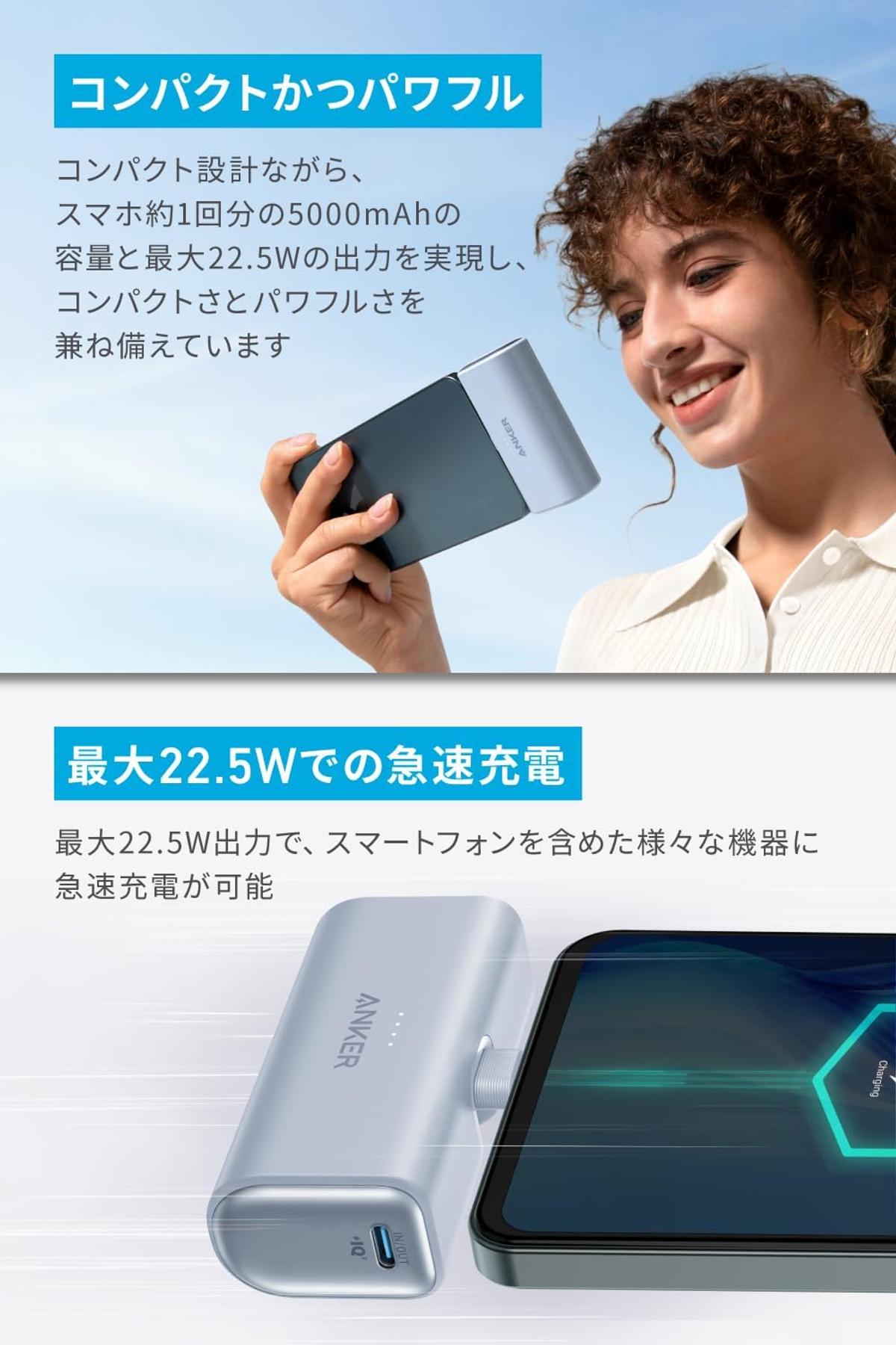現在、USB-C端子一体型構造で、スマートフォンに直接挿して使えるシンプルかつ便利なAnker(アンカー)のモバイルバッテリー「Nano Power Bank(22.5W, Built-In USB-C Connector)」が、お得に登場しています。