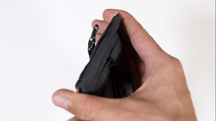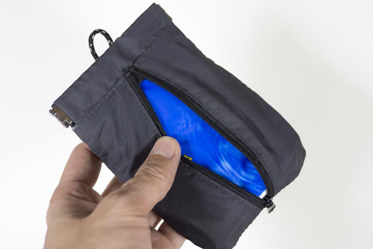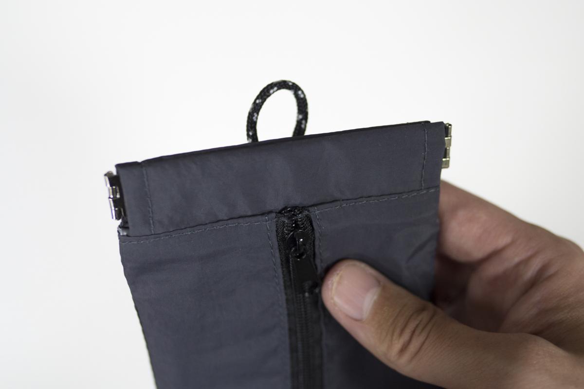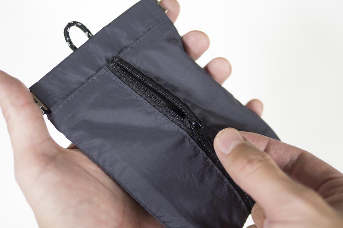 とは言え撥水がうたわれている商品ではなく、ファスナー部分や縫い目からの浸水はしてしまうと思うので、雨天時にはバッグの中などに避難させた方がよさそうです。