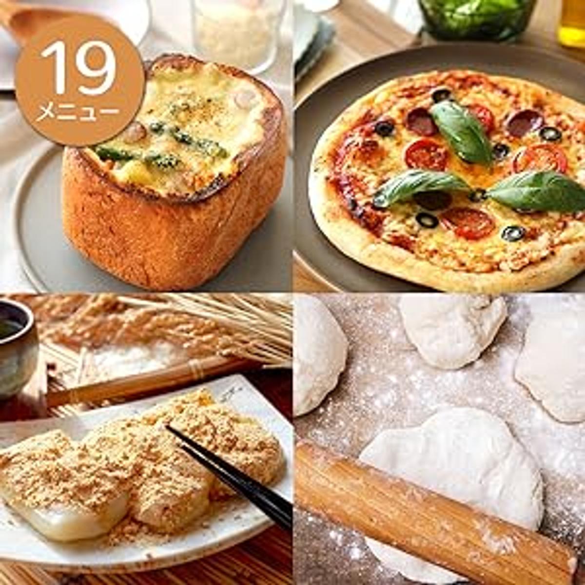こねる、発酵、焼くという機能が搭載されているため、たとえば「ピザ生地」「うどん」「パスタ生地」「ジャム」「もち」「餡」など、19ものメニュー楽しめます。