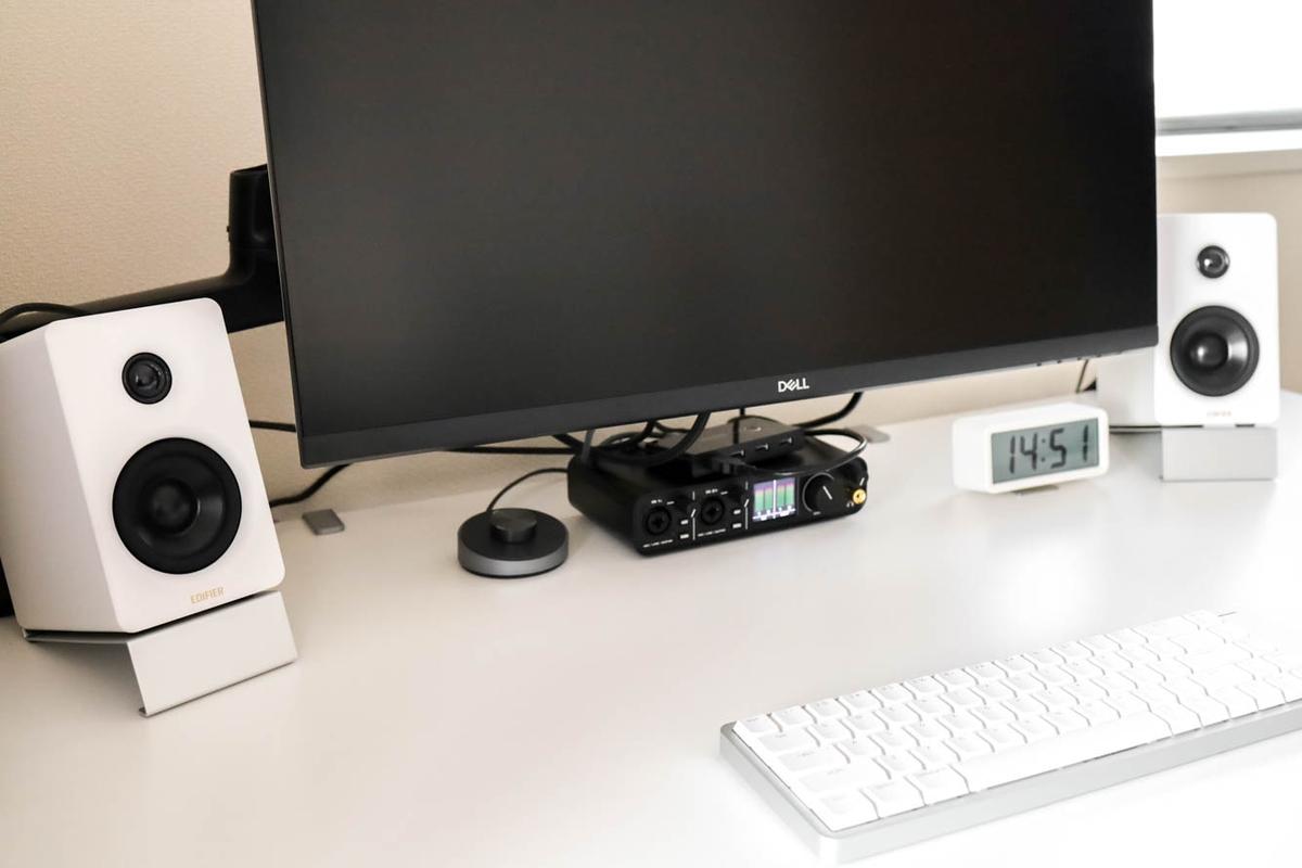 これまではPCやスマホからそのまま流していたのですが、「せっかくならもう少しいい音で楽しみたい」と思い、デスク用のスピーカーを探していました。