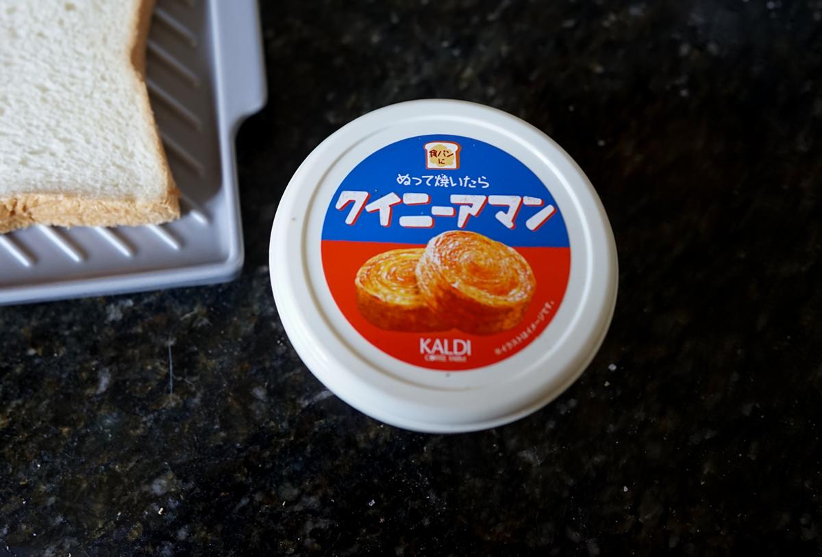 カルディの人気商品「パンにぬって焼いたら」シリーズ。メロンパンやカレーパンは有名で私もよく購入していますが、今回買ったのは「クイニーアマン」です。