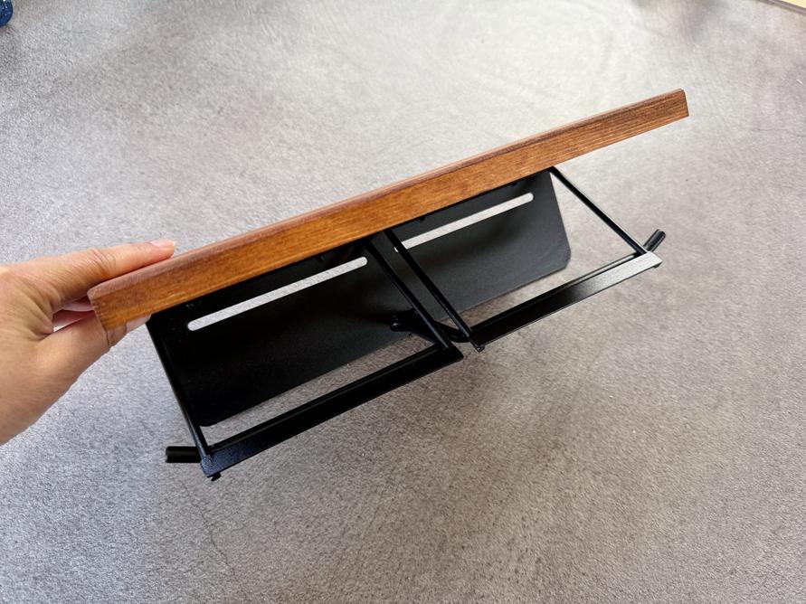 選んだのは、パイン材の天板と黒いスチールフレームの組み合わせが、インダストリアルかつナチュラルな雰囲気の「トイレットペーパーホルダー ダブル」。4種あるうち、古民家の柱の色に近い「ナチュラル×ブラックフレーム」にしてみました。