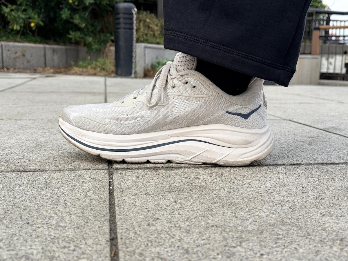 今回のウォーキングのために買った、HOKAの「クリフトン10」。