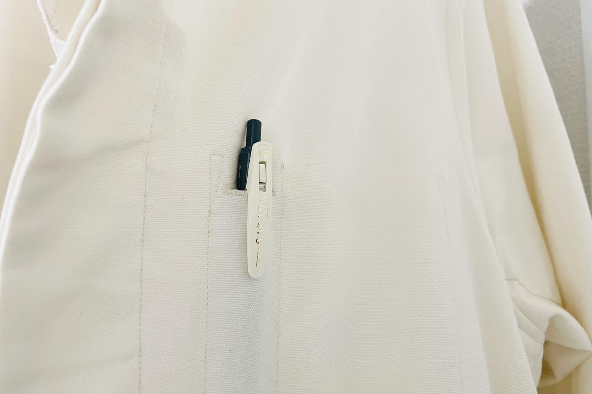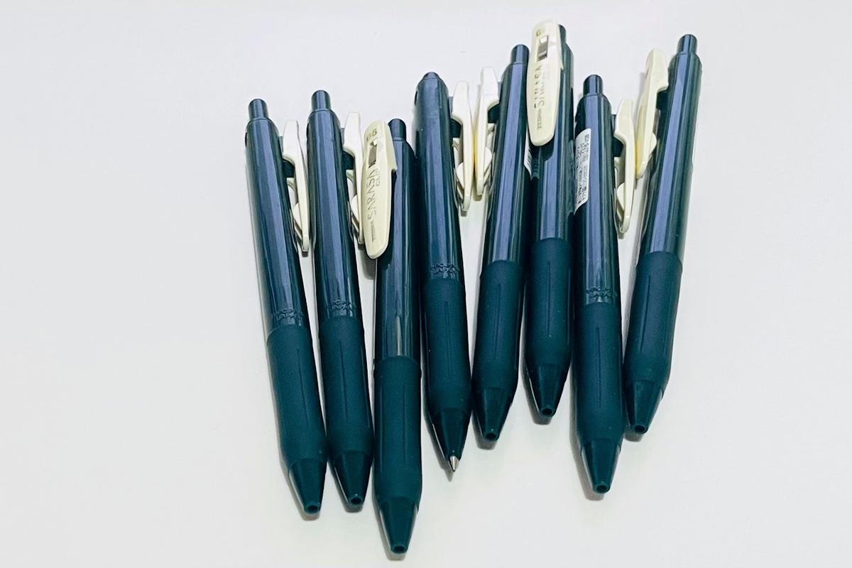 どこでも手に入る安心感がありながら、高級ラインの「サラサグランド」ではなく、あえて110円(税込)の定番モデルを使い続けているのは、出先で万が一忘れてもすぐに買い足せる身軽さが好きだから。