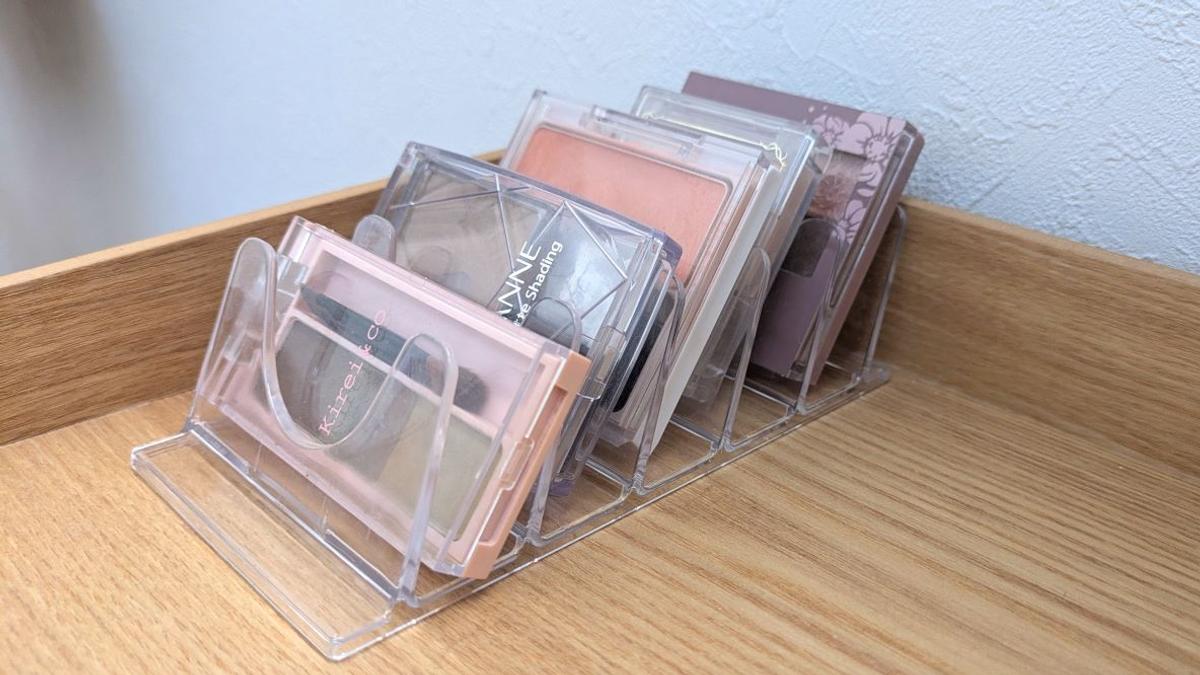 メイク用品のパレット型も立てると出し入れがスムーズ。